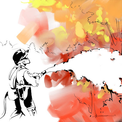 The Amazon rainforest, beset by incessant attacks of largely human induced wildfires, now described as one of the biggest environmental crises of the decade, has been an alarming cause for global concern. The lungs of the planet, a mammoth repository of carbon, and an abundant provider of oxygen, acts as an enabler of the smooth functioning of the international ecosystem. In an effort to combat the assault on nature's most vital force, a substantial number of deployed military troops, volunteers, and non-profit organizations have joined hands together to fight the ongoing effects of the devastating calamity. Artist AP. Shreethar, through his latest series of paintings, seeks to highlight the plight of humanity's greatest warriors and pay tribute to their honourable courage, bravery, and perseverance at the face of this adversity.