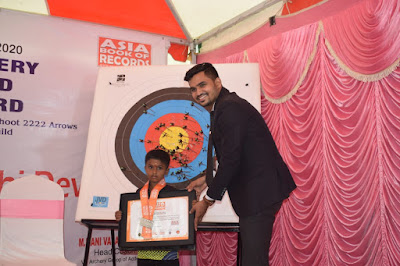 சென்னை அரும்பாக்கத்தை சார்ந்த ஜெயக்குமார் ஸ்ரீலேகா தம்பதியின் மகன் ரிஷி தேவ் நான்கு மணி நேரத்தில் 2222 அம்புகளை எய்து ஏசியா புக் ஆப் ரெக்கார்ட்ஸ் மற்றும் இந்தியா புக் ஆப் ரெக்கார்ட்ஸ் சாதனை செய்துள்ளார்